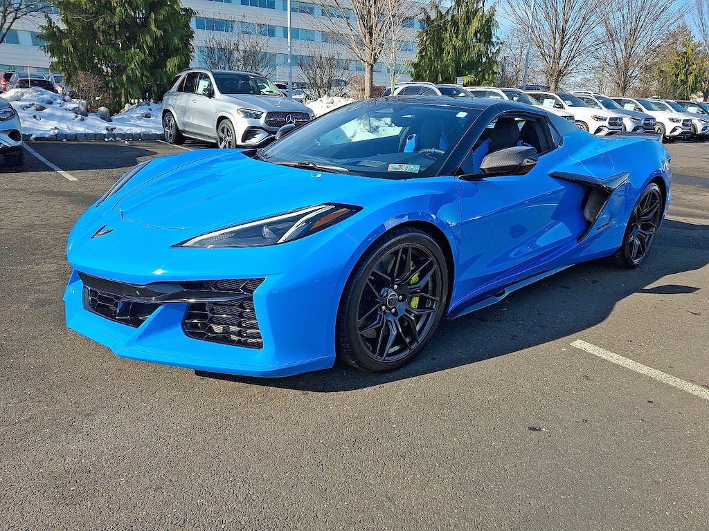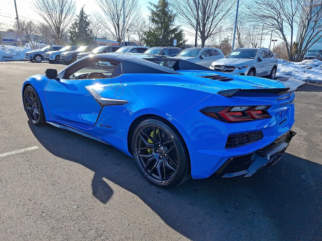This 2024 Chevrolet Corvette Z06 Convertible 3LZ is finished in Rapid Blue over Tension Blue/Twilight Blue Dipped interior and powered by the naturally aspirated 5.5L flat-plane crank V8 paired to an 8-speed dual clutch transmission driving the rear wheels. With just 1,824 miles, this is a highly specified, 1-owner example with a clean CARFAX and original window sticker available.